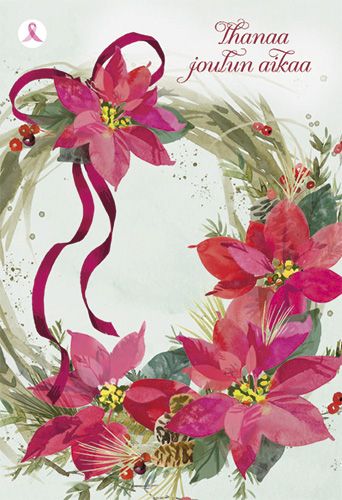 Joulukortti Syöpäsäätiö Roosa nauha joulukranssi