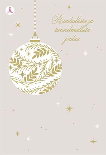 2-osainen joulukortti Syöpäsäätiö Roosa nauha joulupallo