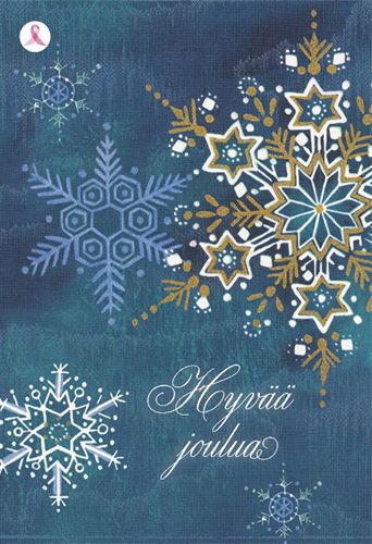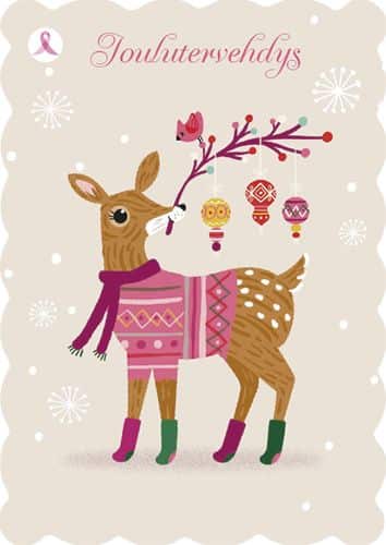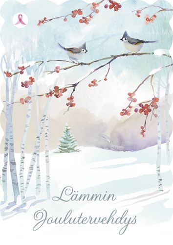 Joulukortti Syöpäsäätiö Roosa nauha linnut