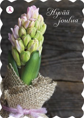 2-osainen joulukortti Syöpäsäätiö Roosa nauha kukat