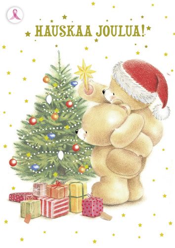 Joulukortti Syöpäsäätiö Roosa nauha nallet
