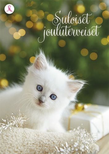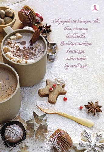 2-osainen joulukortti Syöpäsäätiö Roosa nauha kaakao