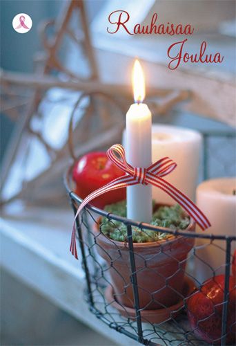 2-osainen joulukortti Syöpäsäätiö Roosa nauha kynttilä