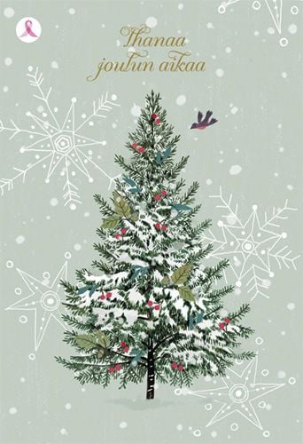 2-osainen joulukortti Syöpäsäätiö Roosa nauha joulukuusi