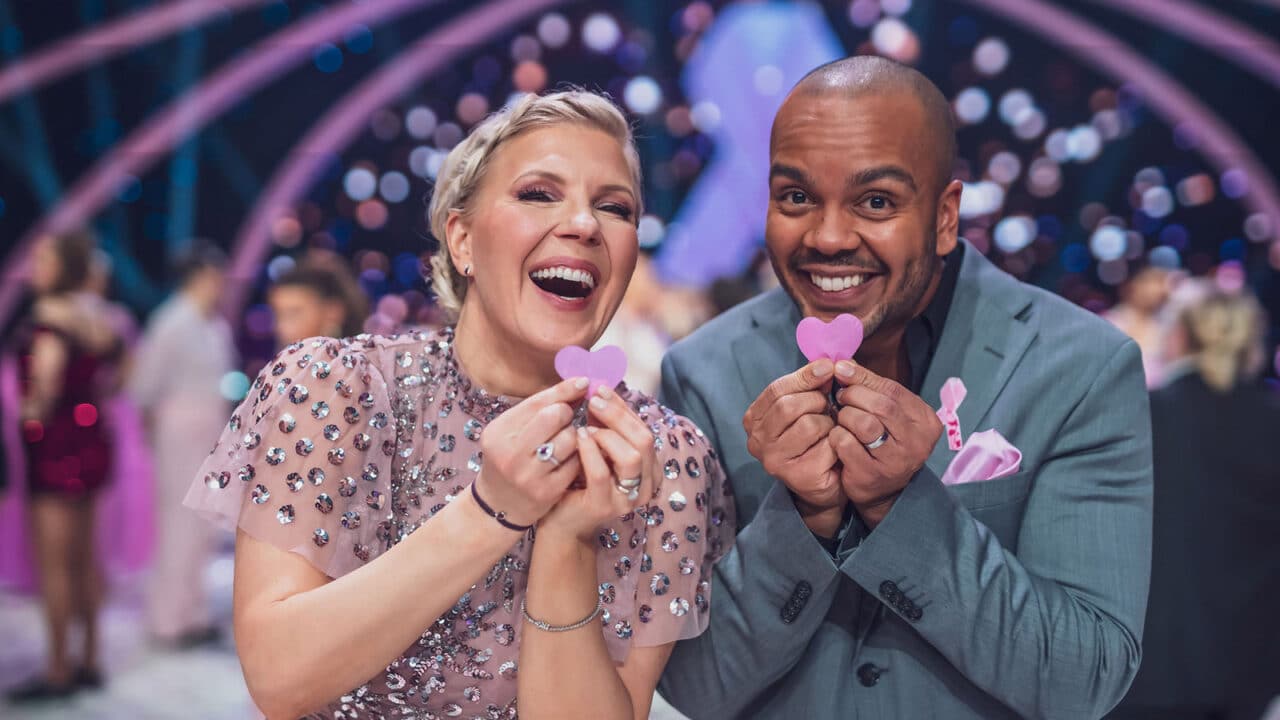 Roosa nauha Tanssii Tähtien kanssa ohjelman juontajat Vappu Pimiä ja Mikko Leppilampi