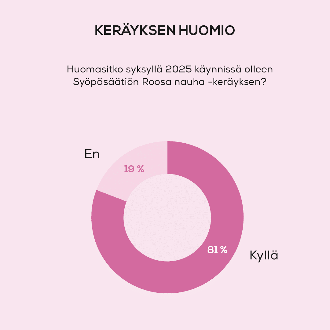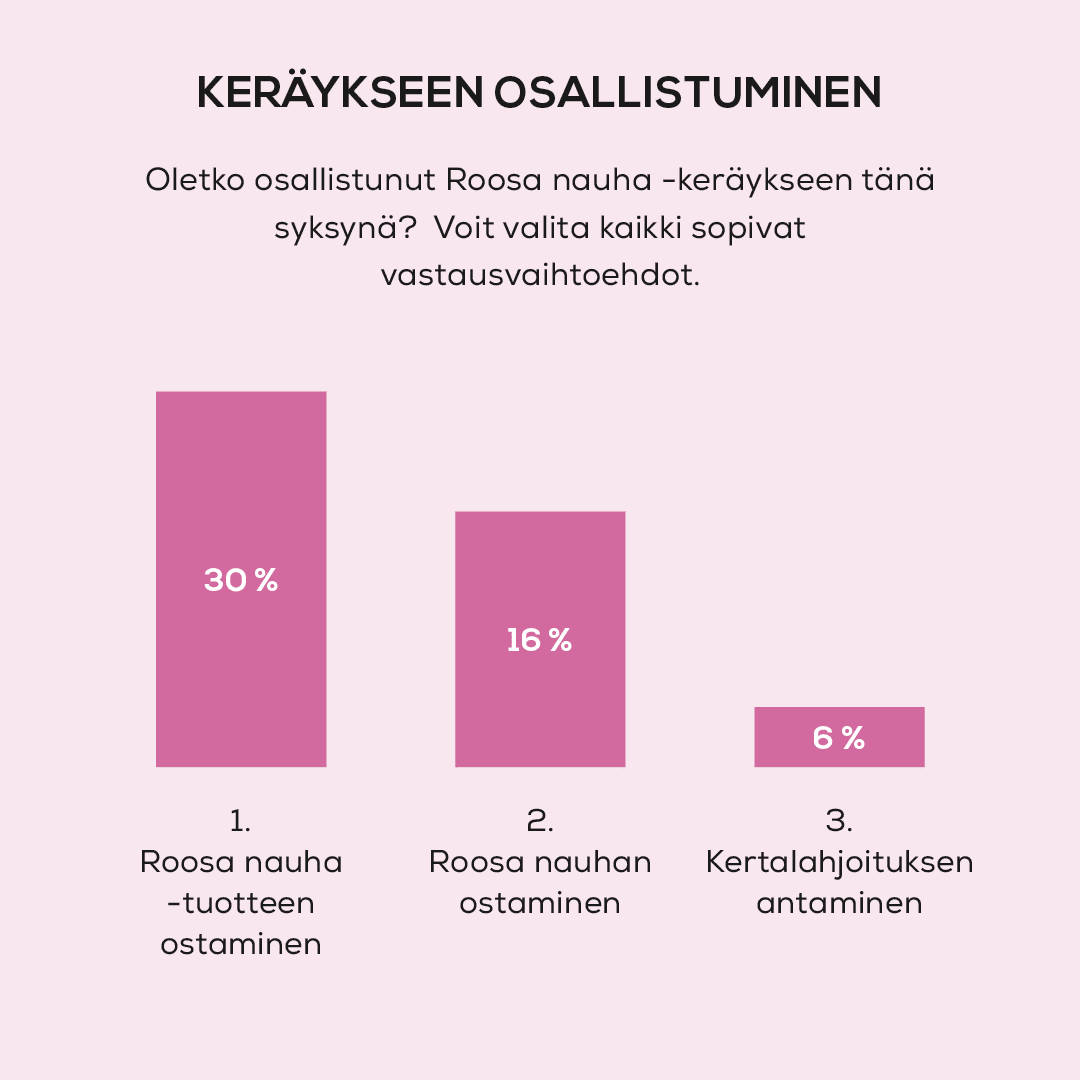 Roosa nauha -keräys on tutkitusti suomalaisten suosituin hyväntekeväisyyskohde